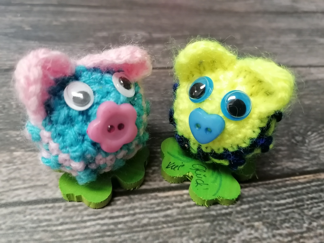 This is Nutschi. Nutschi is the name for a cute little pig with me in Central Carinthia. I love Nutschi, but Nutschi is especially popular at my New Year's Eve stand. Especially children then stand for minutes in front of the "piggery" and can only decide with great difficulty which one they want to take. I have already tried all possible color combinations - all are simply adorable.