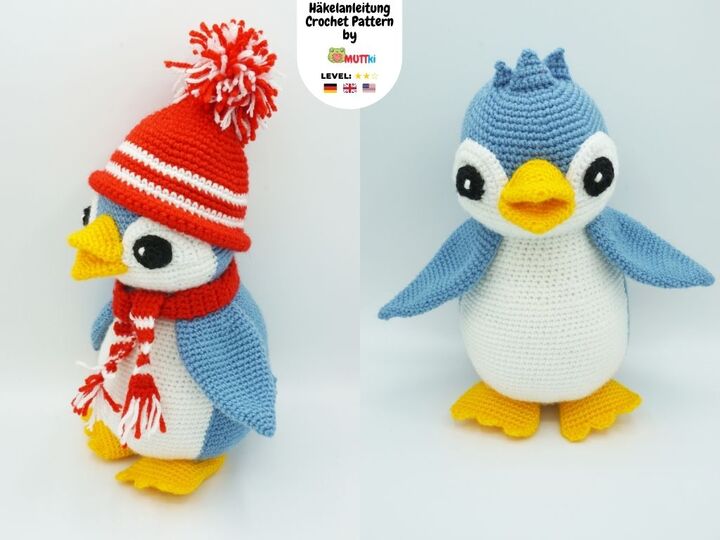 This crochet pattern is challenging due to beak, cap and scarf. You need at least advanced knowledge.