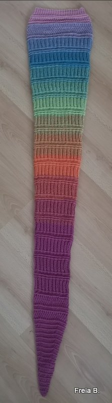 For my Zipfelbert I used 1250 m, around 245 g, 3-ply cotton/polyacrly gradient yarn from Funny Hooks and a crochet hook Size 3.5 mm. This resulted in a length of 140 cm.