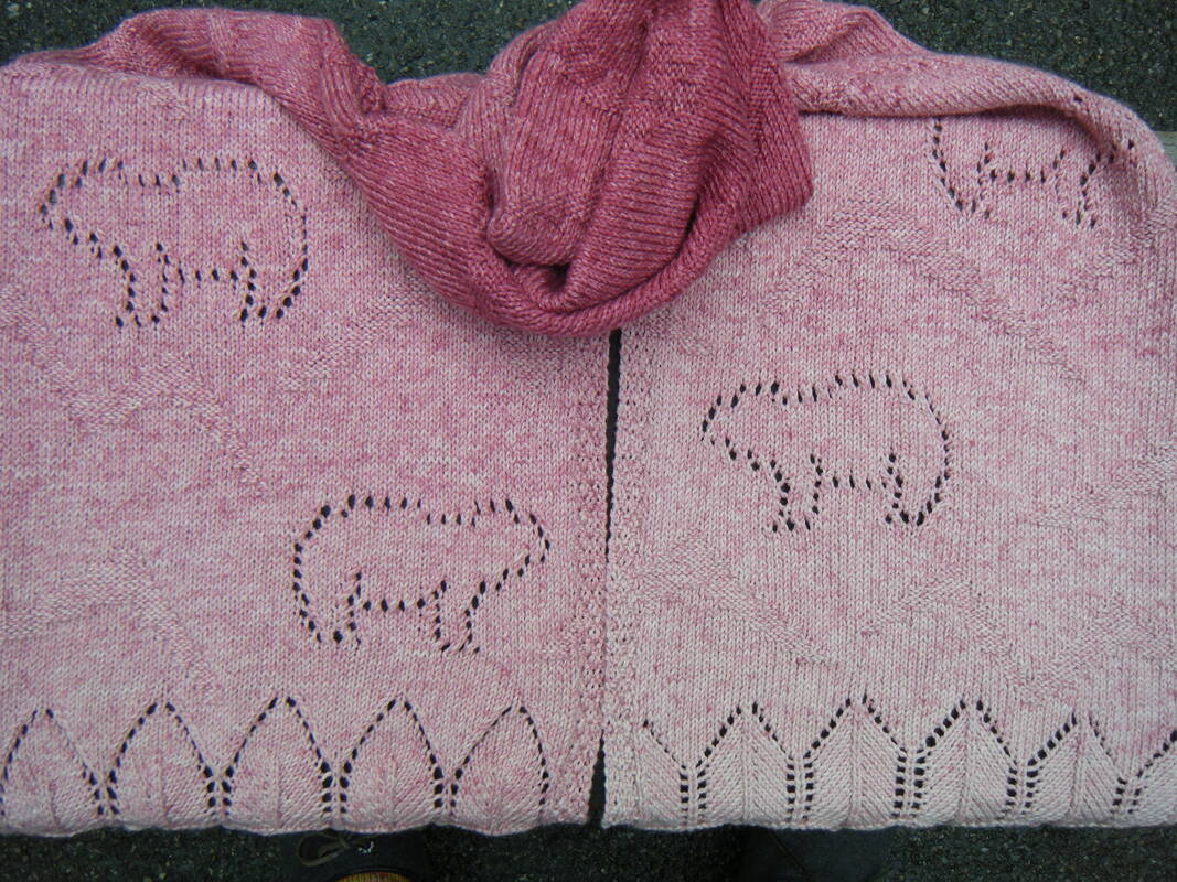 On this scarf, 6polar bears meet in the midnight sun between craggy icebergs.