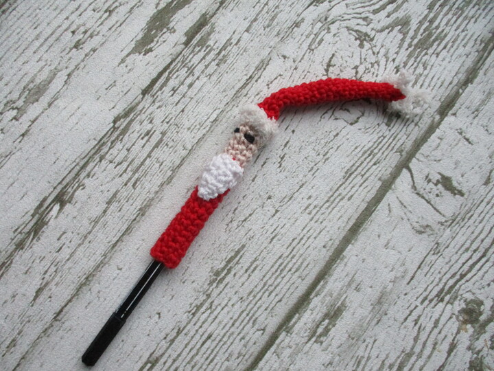 Einfache Bild an Bild anleitung zum nach häkeln dieses lustigen weihnachtlichen Stifteüberzug/ Hülle.