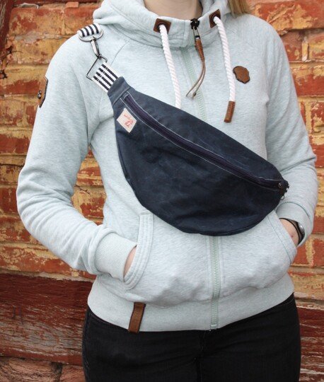 Es handelt sich um eine weiche Gürteltasche, die sich an den Körper anschmiegt und dadurch nicht aufträgt. Sie bietet trotzdem einigen Stauraum für Handy, Portemonnaie, Schlüssel, Maske und was Frau / Mann sonst noch so braucht.
