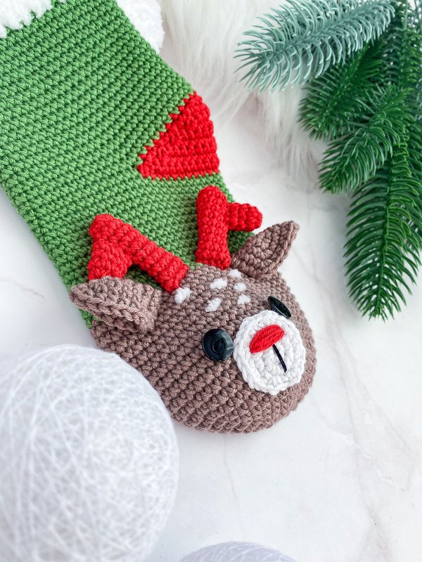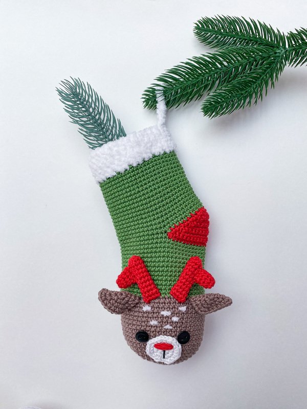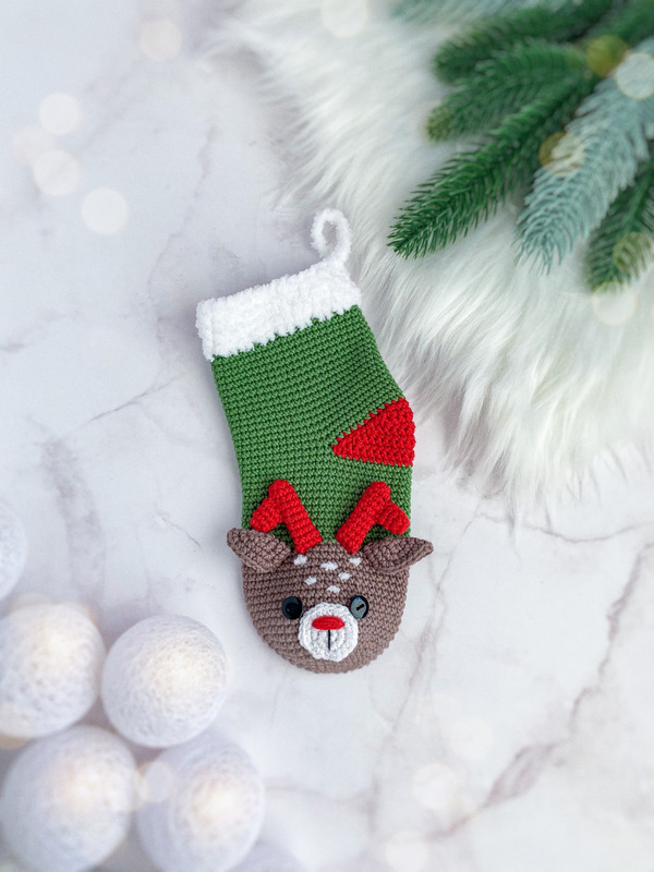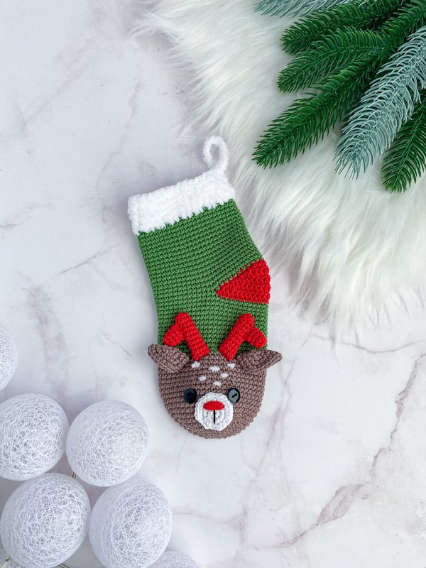 Stocking is about 8-9 inches, If you use cotton yarn (50g/160m). The final size of the stocking depends on the yarn thickness, the hook size and the density of crocheting, so it may slightly differ from noted in the pattern.