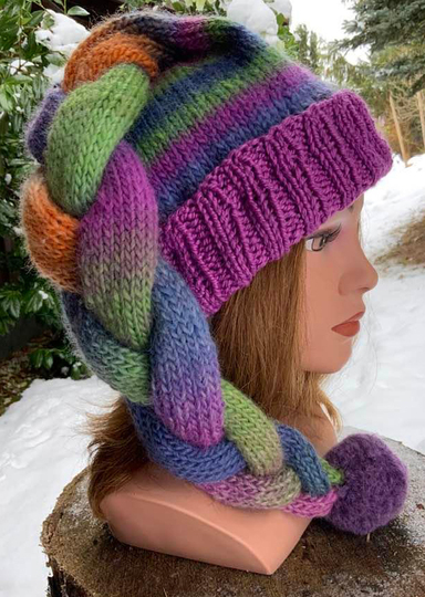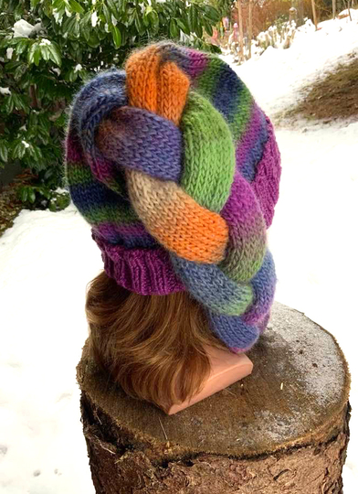 GESTRICKTE Mütze LUKAS mit dem dicken, geflochtenen Zopf ist sehr einfach: ...auch für Anfänger..nur linke und rechte Maschen sind hier nötig
