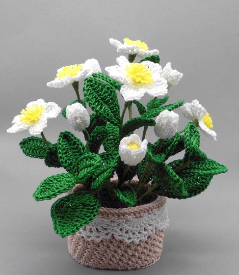 In addition to the written crochet instructions, the PDF file also includes the crochet charts for flowers, buds and leaves, the oval pot and the beautiful crochet border. In the instructions there are very many detailed and explained step-by-step photos, so you can successfully recreate the Christmas rose very easy.