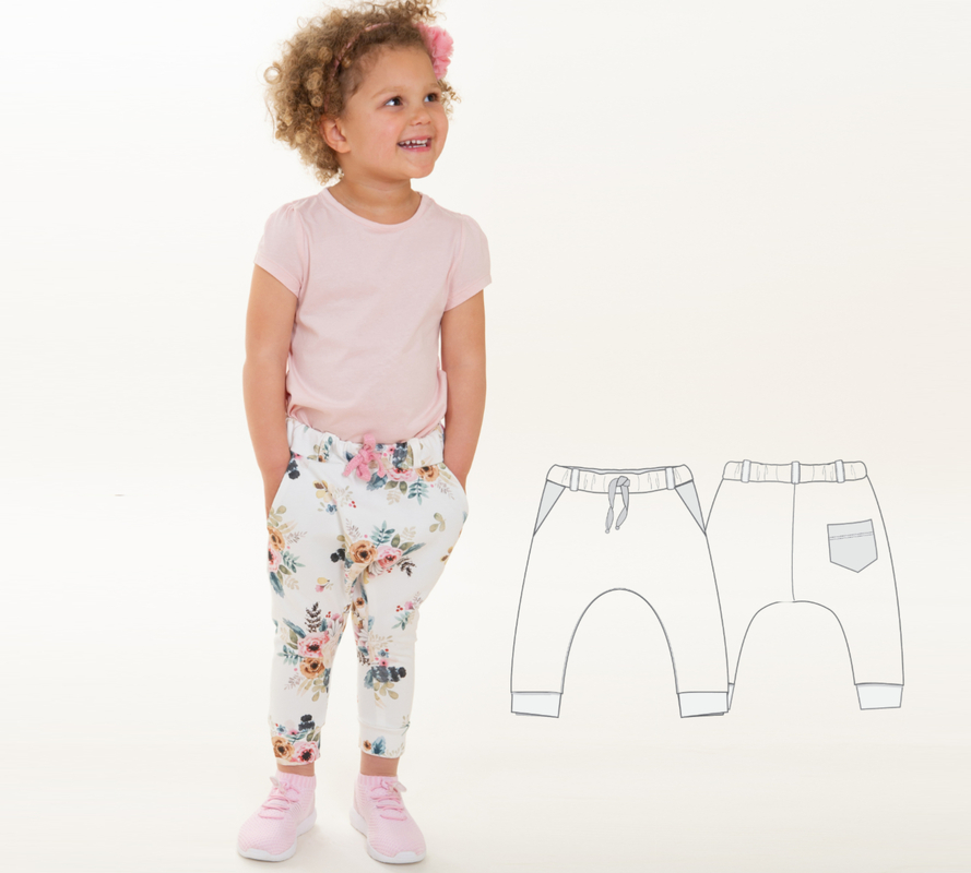 With this digital sewing pattern you can sew the DADO kids pants as comfy harem-style or jogger-style pants for girls and boys. DADO features an elastic waistband, side pockets, and a relaxed fit for easy movement. For extra comfort, the pants are designed without a center seam. Perfect for daycare, everyday wear, and playtime.