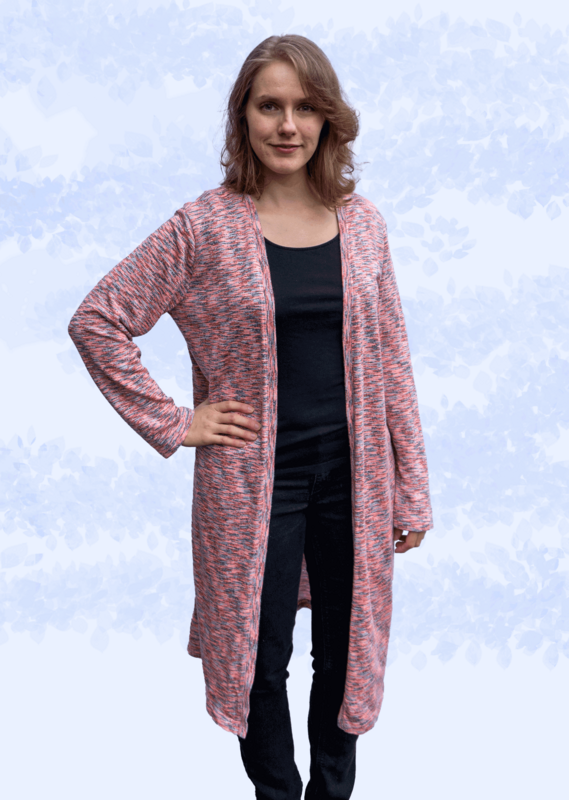 This cardigan is perfect for various stable knit fabrics, such as jersey, sweatshirt fabric, or knit fabrics. When using looser knit fabrics, the cardigan will have a more flowing fit.