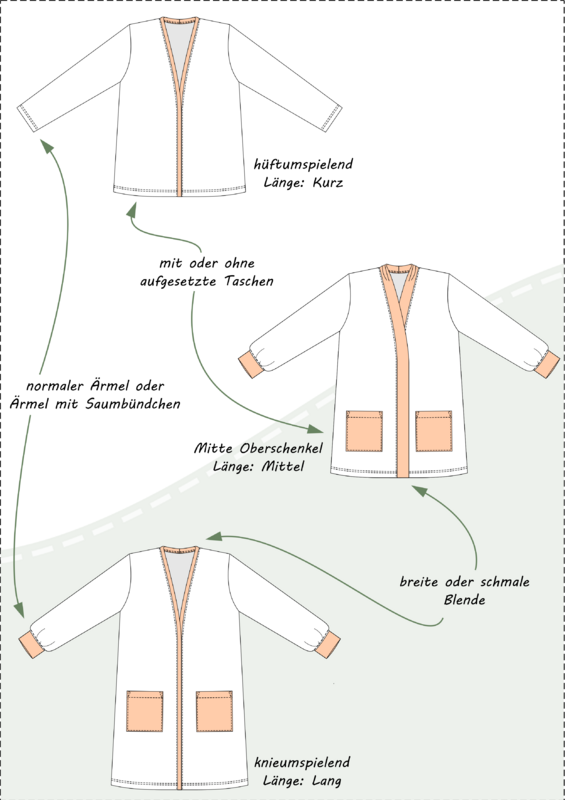 You can sew this cardigan as a beginner. Basic experience with jersey fabrics is helpful.