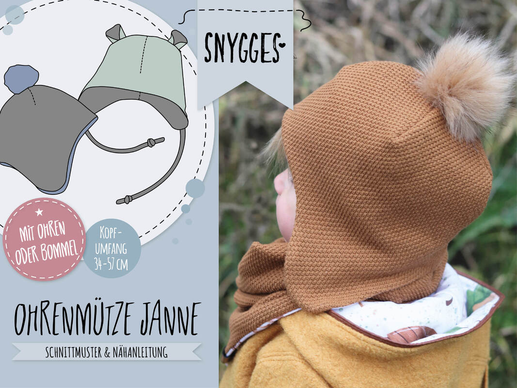 Die Mütze kann mit drei verschiedenen Ohrenvarianten, ganz schlicht oder mit Bommel genäht werden.