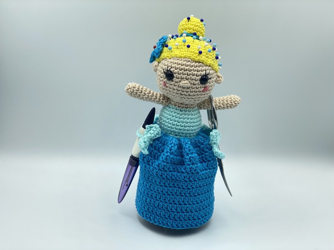 With this crochet pattern you can easily this cute princess. She loves helping you with sewing work :)