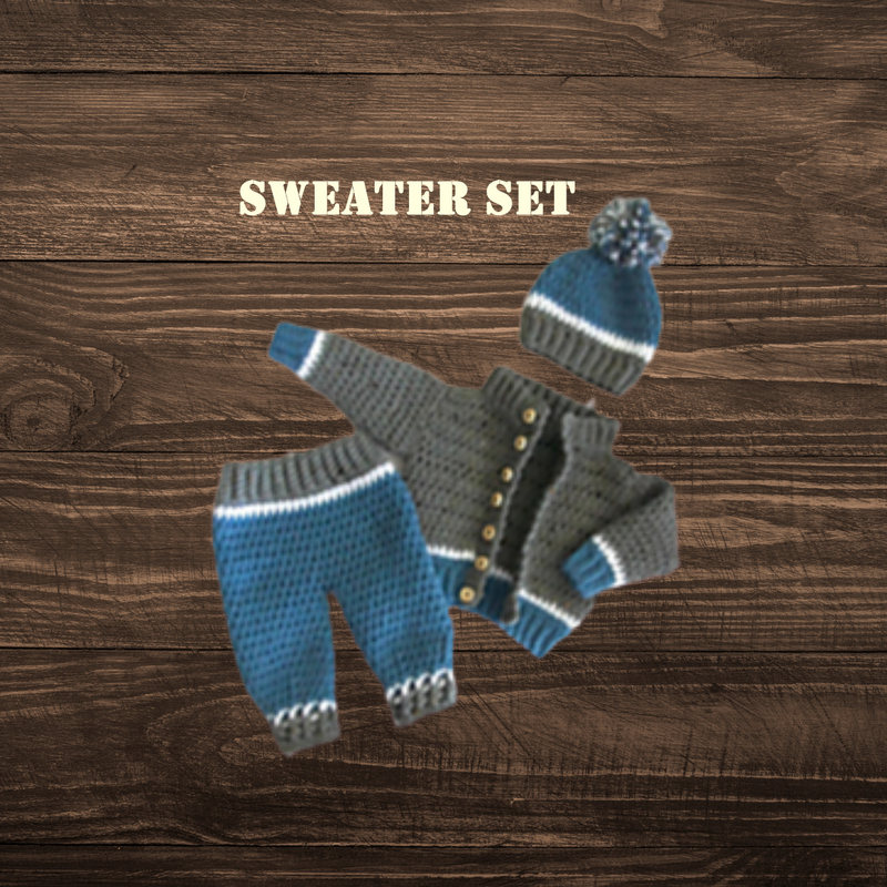 This pattern set is for all that are shown in the pictures. The Tuxedo, Fireman, SweateSr Set and Camouflage outfit. Super fun, quick and easy baby boy patterns to crochet up for gifts, to sell or just for the love of crochet.
