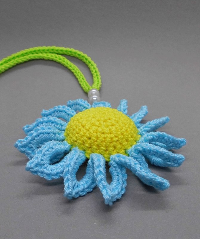 In addition to the written crochet instructions, the PDF file contains the crochet chart for the petals and many detailed photos, so you can easily copy the beautiful decorative hanger with the large flower.