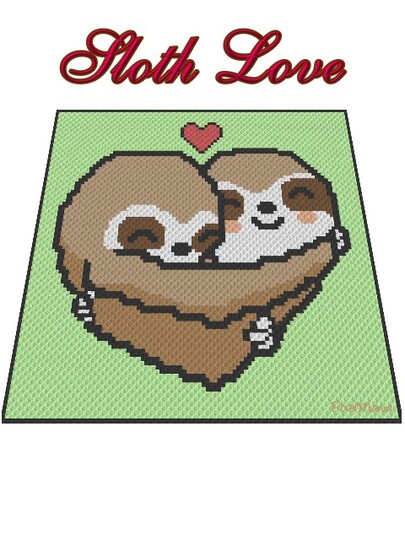 Sloth Love is a digital diagram that can be used for different crochet techniques, such as corner to corner = C2C, mini C2C, single crochet, half double crochet, double crochet, Tunisian crochet, bobble stitch. Alternatively, this product can also be used for cross stitch, knitting, hamma beads, plastic canvas and other projects.