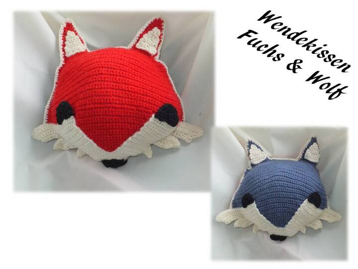 Wer Fuchs und Wolf mag und eine tolle neue Deko sucht sollte dieses tolle Wendekissen nachhäkeln.**