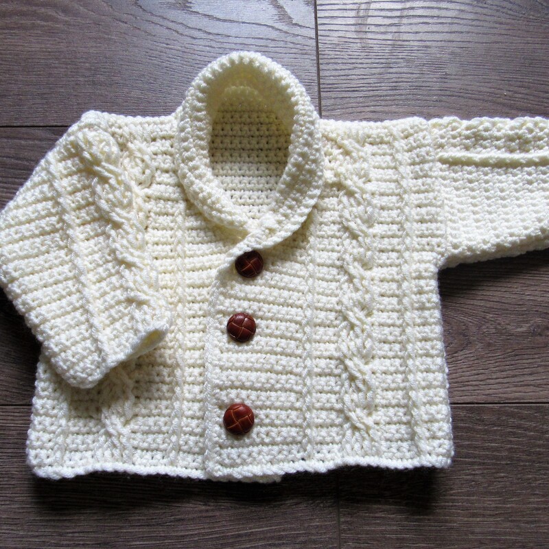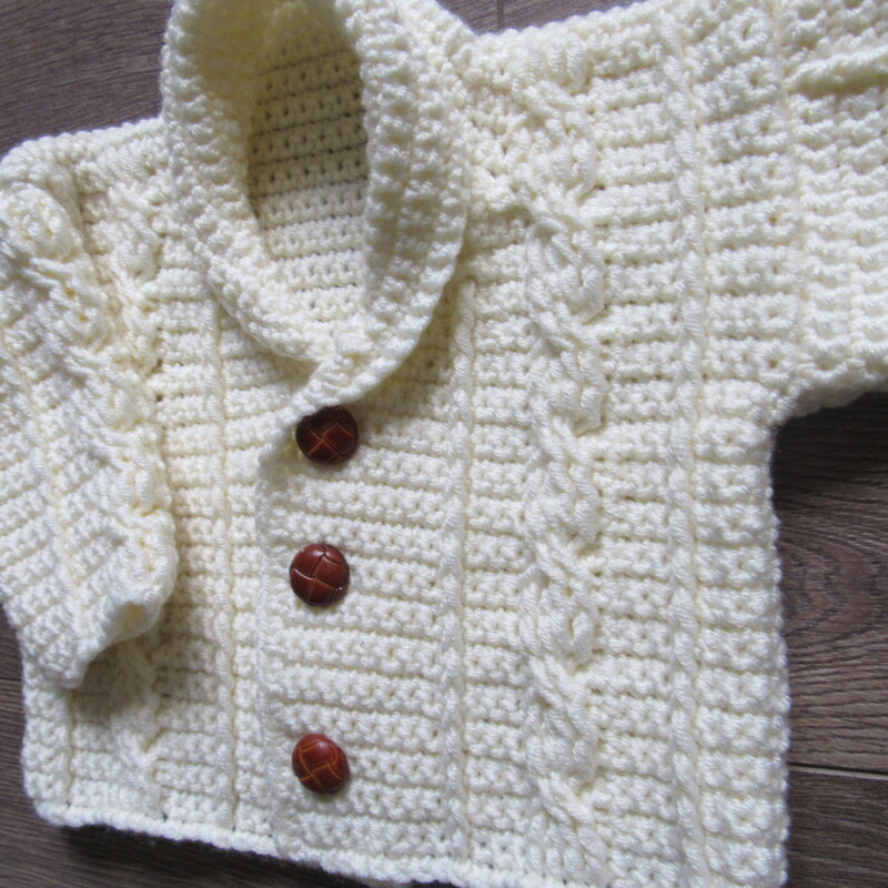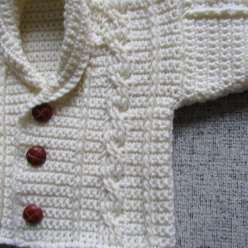 A simple cable on the front and sleeves of the cardigan results in a cute textured jacket.