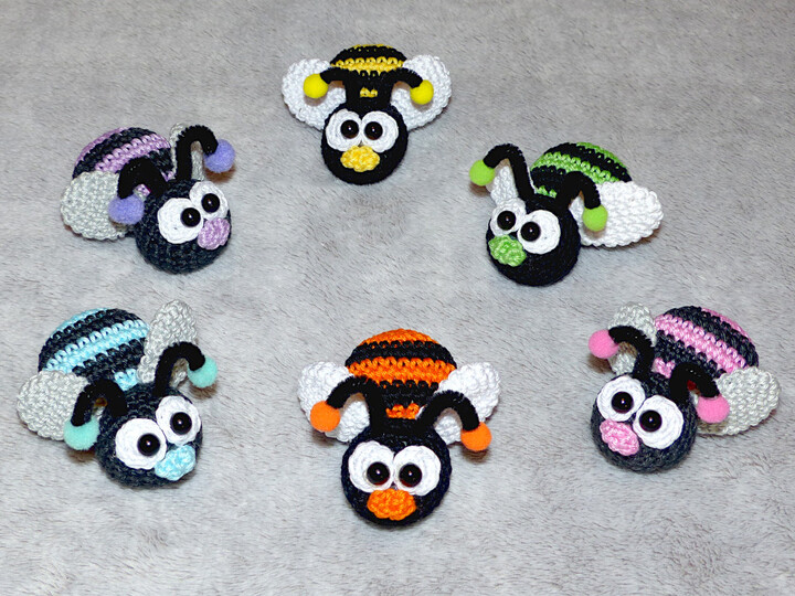 These small bumblebees spread a good mood with their bright colors. Decorate your spring door wreath with these funny fellows or take them as a key ring, bag hanger or gift tag. They are quickly crocheted and you only need some leftover yarn.