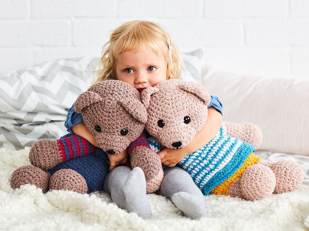 Diese beiden super kuscheligen Bären sind stolze 45 cm groß. Trotzdem sind sie schnell gefertigt, denn sie wurden mit der Woolly hugs FROTTE XL gehäkelt. Das dicke Garn ist aus 100% Baumwolle und sehr pflegeleicht.