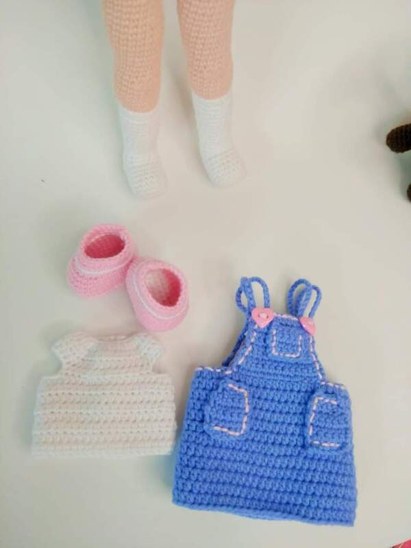 -28 Pdf file with detailed instructions of the doll and clothes. Her shoes,, dresses are removable.