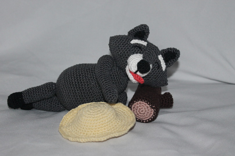 The crochet racoon will become about 25 cm/ 20 inches long.