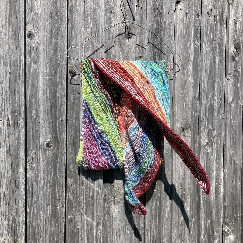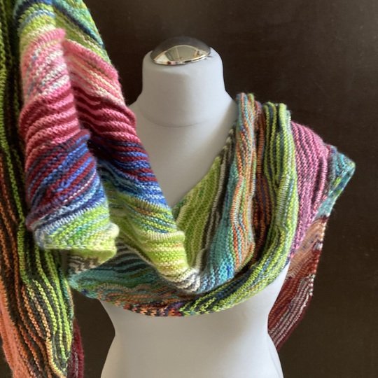 The scarf looks also great knitted from leftovers. It will be a colorful unique piece for the next party.