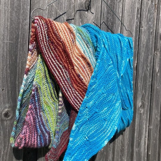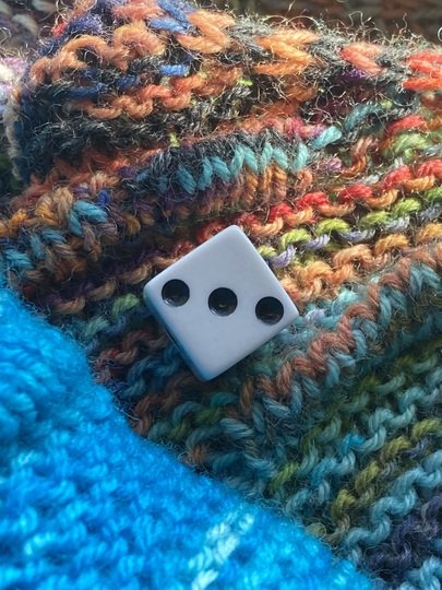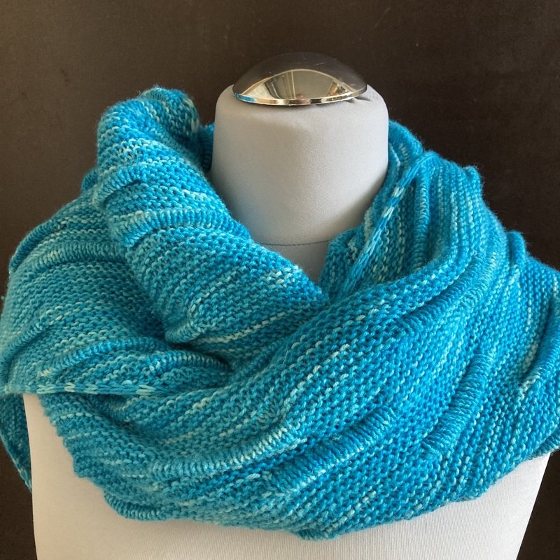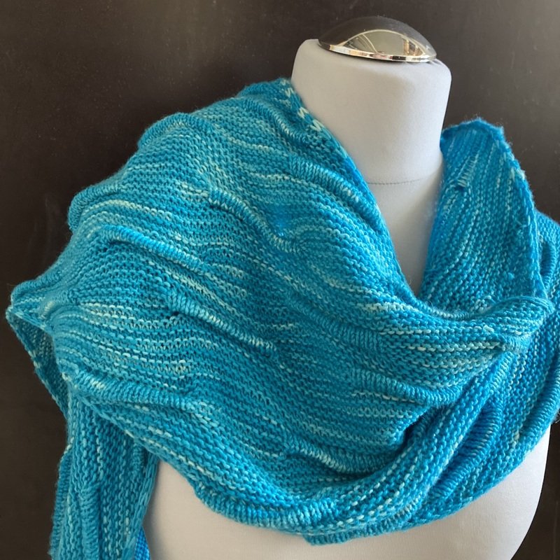In any case, the color is a reason for the name. The waves are knitted at random intervals, like there is a lot going on in the pool. It’s also fun to throw your dice to receive a unique scarf.