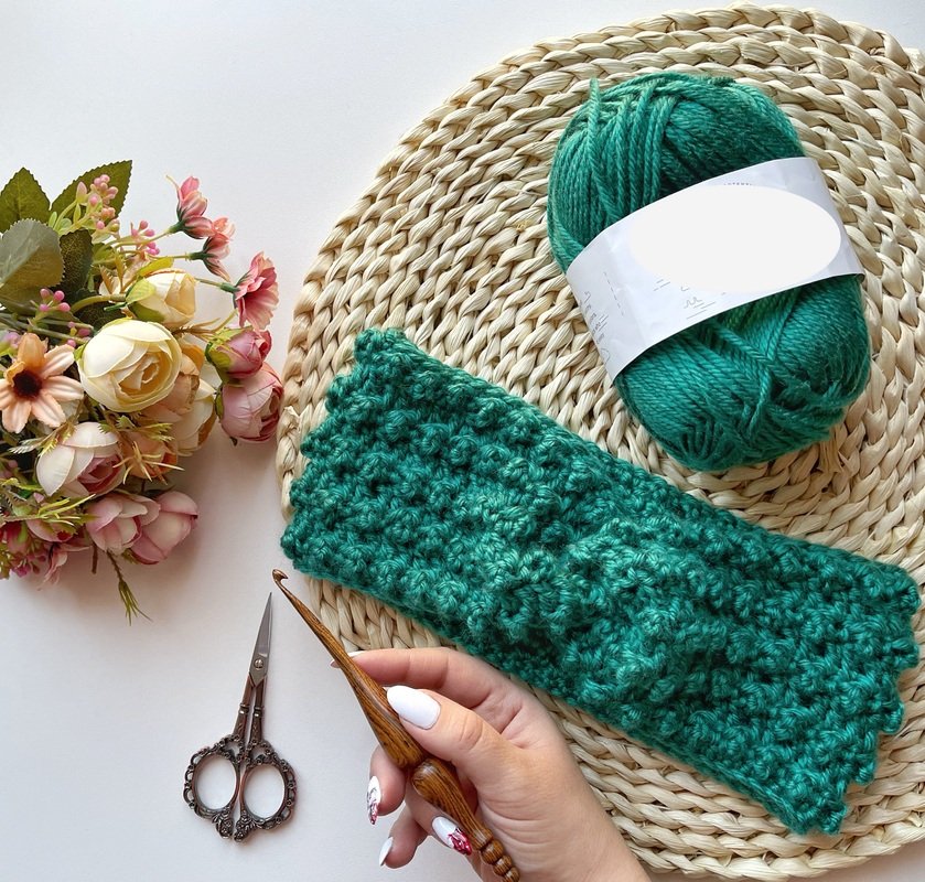 • 60 grams, 72 yards/65 meters of Aran/Worsted weight yarn (I used Furls Wander Acrylic in Surf shade)