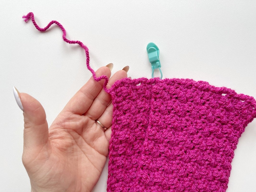• 40 grams, 80 yards/74 meters of Aran/Worsted weight yarn (I used Paintbox Yarns Simply Aran in Raspberry Pink shade)