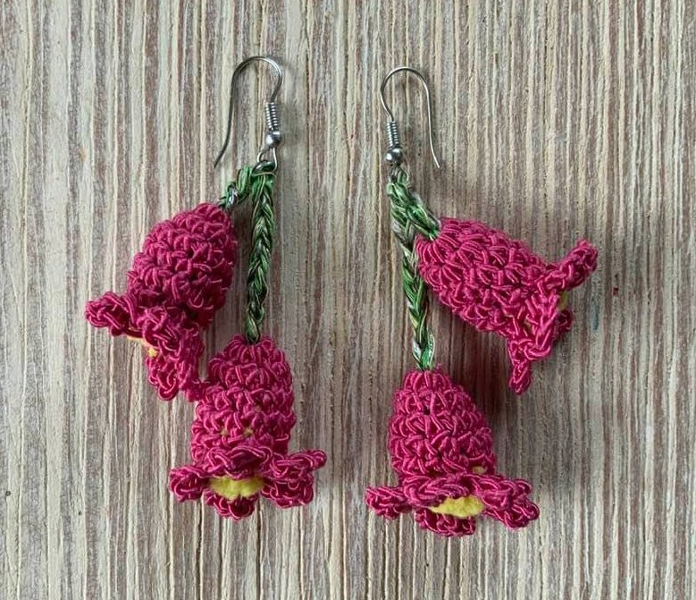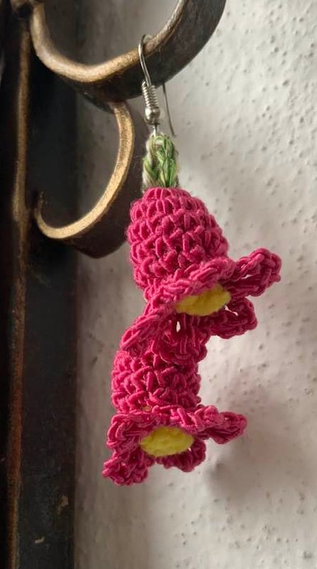 Man kann natürlich jede andere Wolle mit einer ähnlichen Lauflänge benutzen( um so dünner die Wolle , um so putziger werden die Glockenblumen) … Auch viele Farbkombinationen sind bei dem hübschen Ohrringe möglich! Ich wünsche viel Vergnügen beim Kreativ sein!