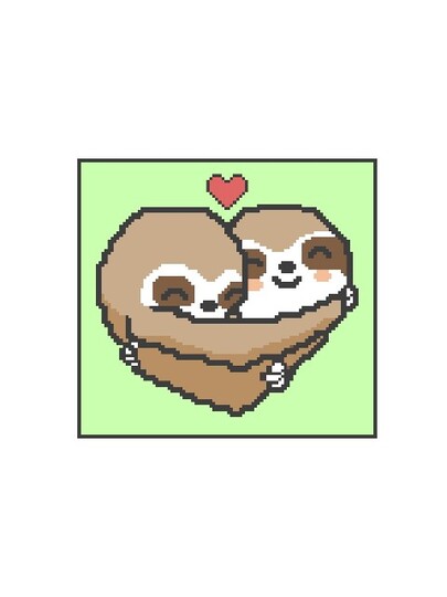 Slothlove is a digital chart that can be used for various crochet techniques, single crochet, dc, hdc, Tunisian Crochet, Bobble Stitch, c2c. Alternatively, this product can also be used for cross-stitch, knitting, Hamma beads, plastic canvas and other projects.