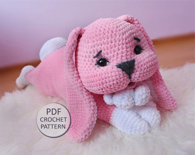 It is very easy to crochet this bunny, if using the pointed materials its size is 40 cm x 85 cm. If you want