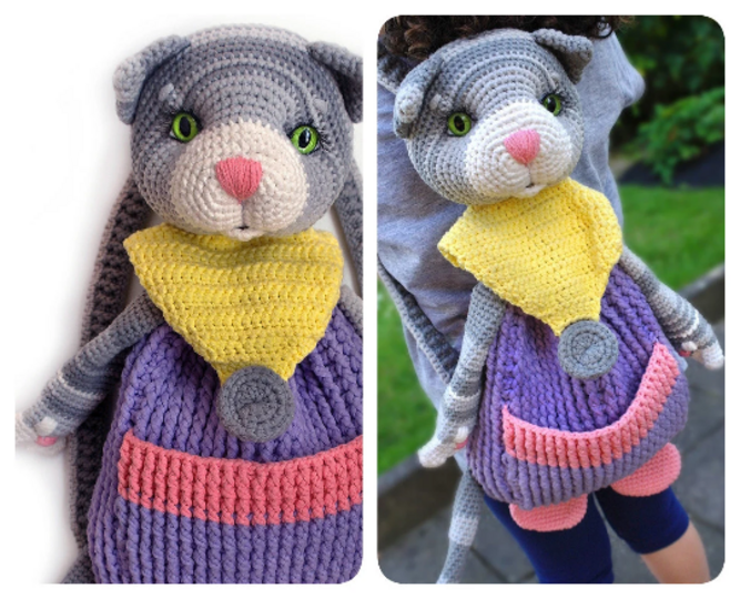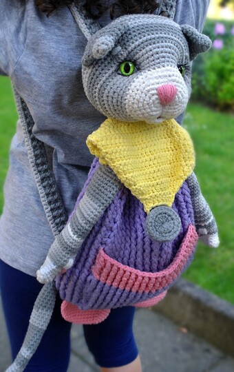 Width: 19 cm (7,5 inch). Length from head to tail: 38cm (15 inch). Bag Inside: w20 x h23 (w 7,8 x h 9 inch). Depending on used wool the bag can be bigger or smaller.