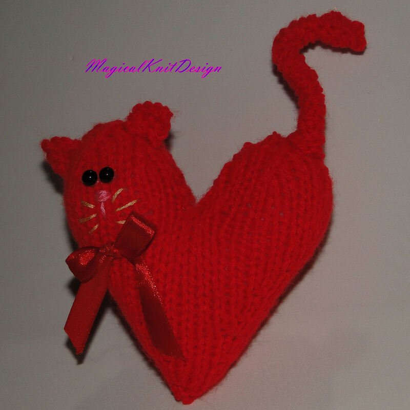 This is my Love Cat, knitted flat with straight Knitting needles, easy to follow with row by row written instructions and photo-tutorial.