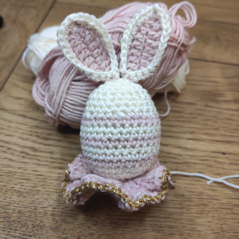 Material for 2 small and 2 large eggs with ruffled collar, 2 of them with rabbit ears:
