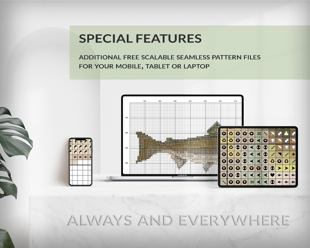 You will receive the cross stitch pattern as PDF files, available for instant download. The digital files are optimized for printing an paper or fore use on the screens of tablets, mobile phones or laptops (well tested for Pattern Keeper, WinStitch, etc.). You can buy these files right here and download them immediately.