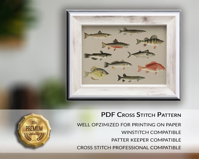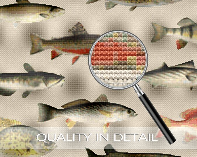 Here you get a collection of 10 selected food fish - a picture to embroider not only for cooks! Fishermen, nature lovers and every fish lover will also be delighted with this particularly beautiful picture.
