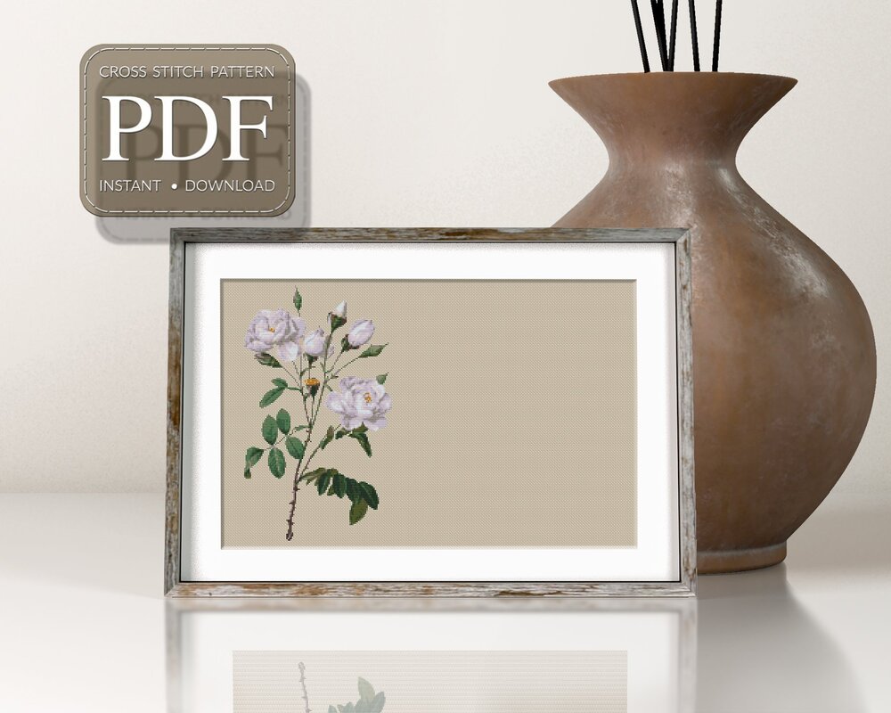 Diese seltene weiße Rose wurde im 19. Jahrhundert vom Franzosen Pierre-Joseph Redouté gemalt und publiziert, die Entstehung diesesWerkes liegt in der Nachnapoleonischen Zeit.