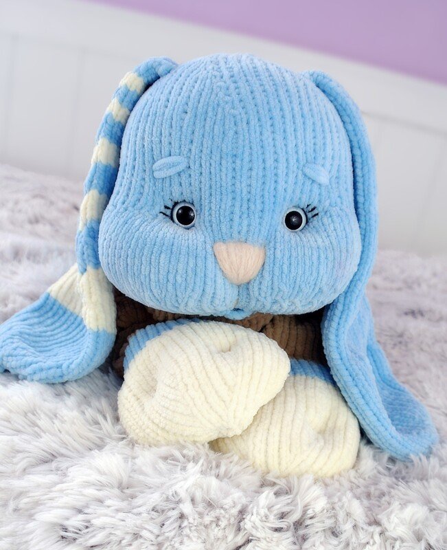 This cute and soft bunny can be a pillow and a good friend. It's very easy to knitt, if you use the same materials as I did it will be 40cm x 85cm If you use thinner yarn and a suitable hook - your cat will be smaller, like a toy.
