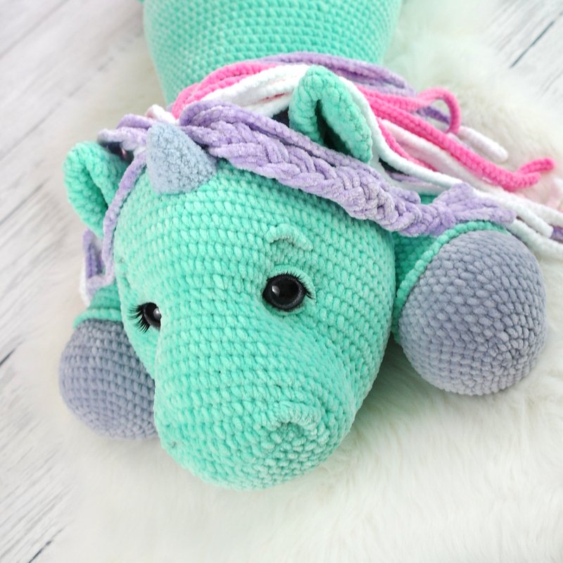 unicorn is 85 cm, if using the pointed yarn. If you want, you can crochet a smaller