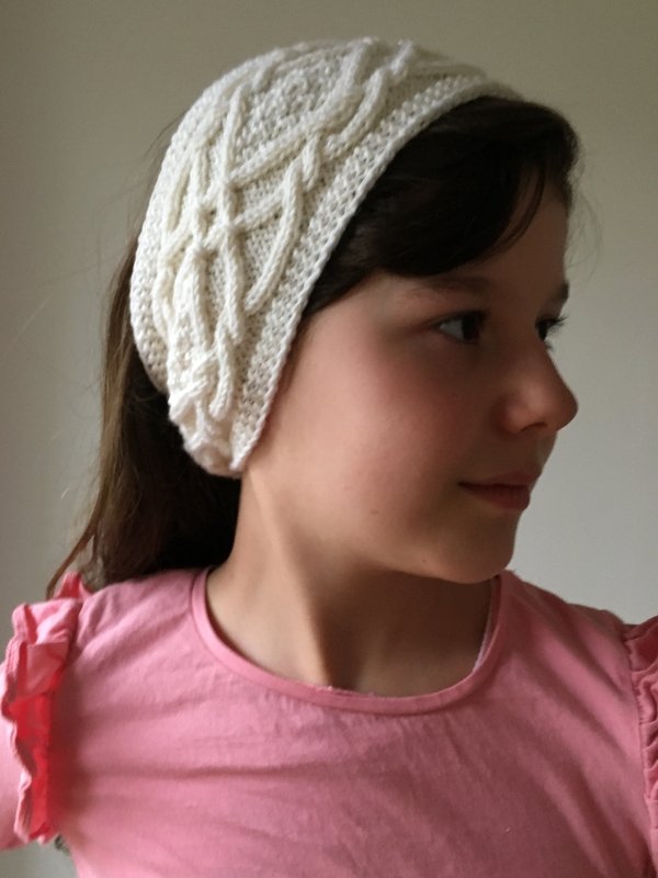 Maria is a headband decorated with a bold cable pattern going around the head.