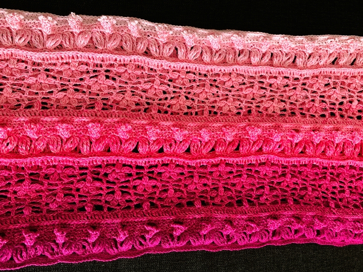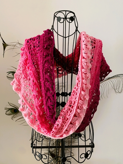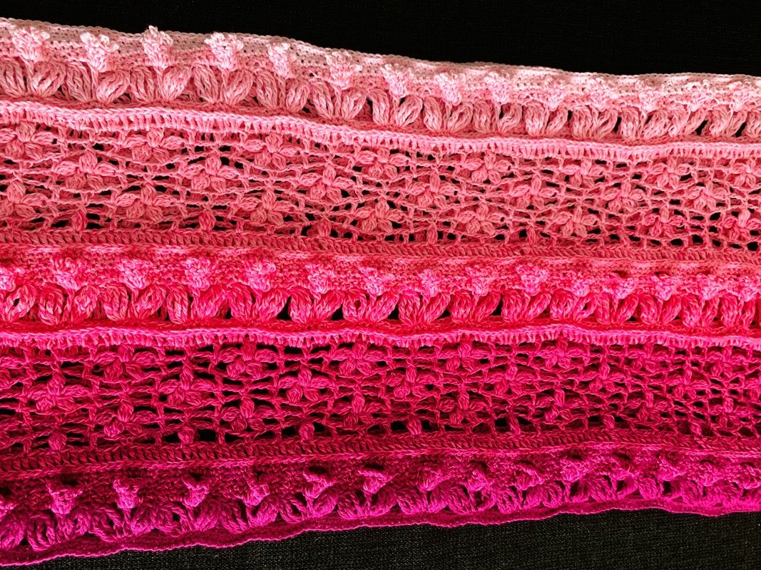 The pattern repeats after a few rows, each pattern set consists of 16 stitches, so the loop can be made a little wider or narrower, or even longer or shorter according to your own preference.