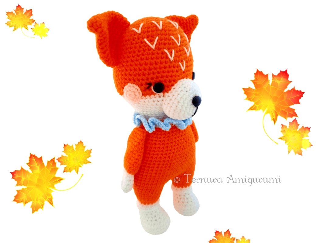 Gunther is a little fox with very nice details! You can make it in different colors and it's also perfect for gifting. Children love to play with it and adults love to decorate their room and always have it available for their grandchildren to play with! The finished dimensions are approx. 30 cm. The size may vary depending on the size of the needle and thread.