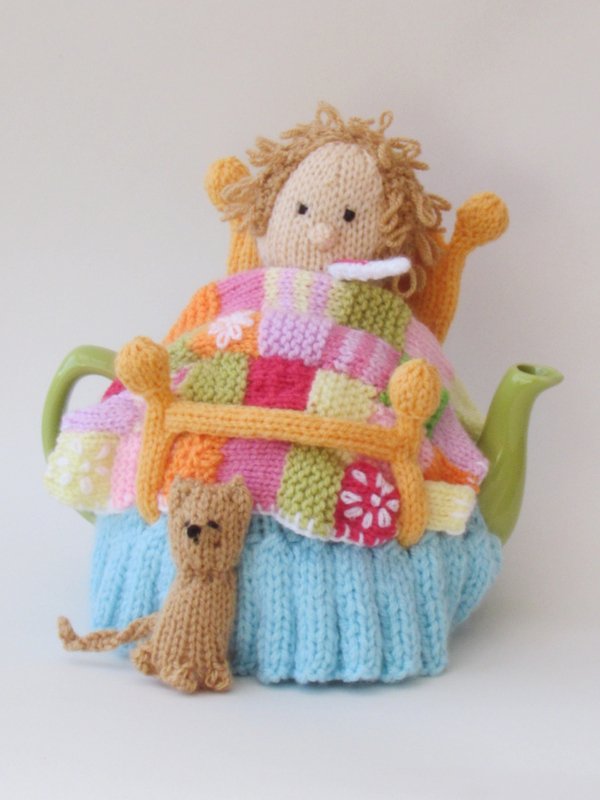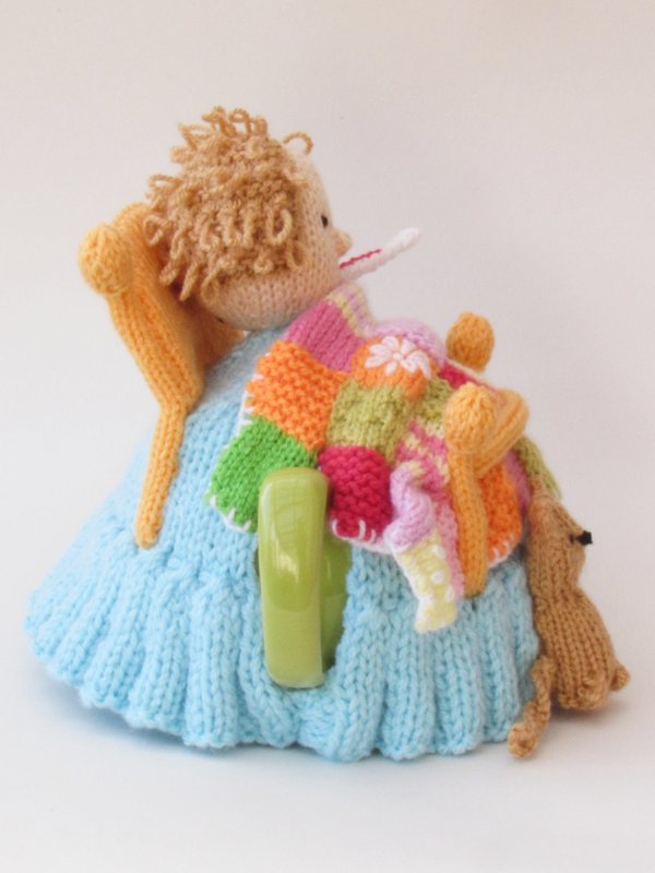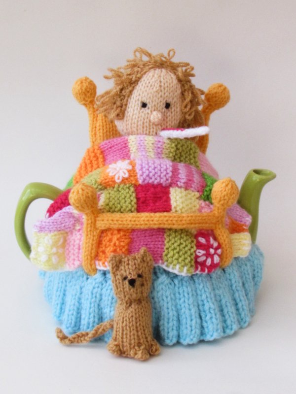 The Get Well Soon Tea Cosy Knitting Pattern feature this lovely composition of someone who needs some get well soon wishes.