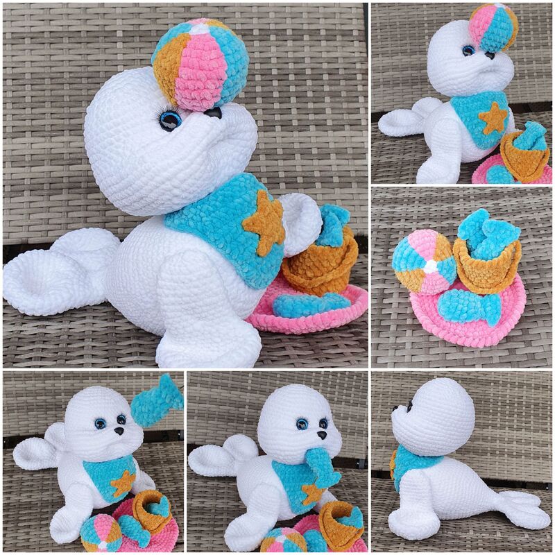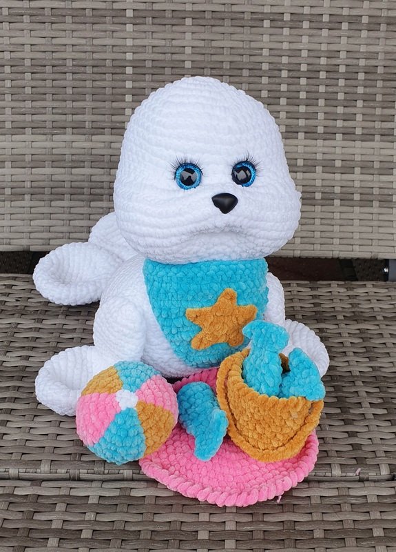 When purchasing this product you will receive a detailed crochet pattern in PDF format, not the finished amigurumi. In the instructions I describe step by step how to crochet the seal and its accessories. The instructions have 30 pages and are provided with many colorful pictures. The pattern does NOT include a basic crochet course.