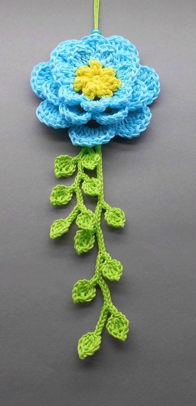 In addition to the written crochet explanation, the PDF instructions also include the crochet charts for the flower and the leaf tendrils and many detailed and explained step-by-step photos so that you can successfully recreate this beautiful decorative hanger very easily.