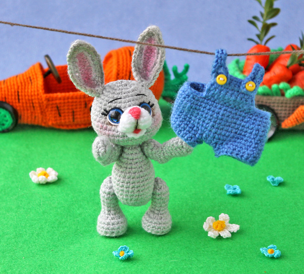 This tutorial contains instructions on how to make a bunny in overalls. The bunny can sit and stand with support. The paws are moving, they are on a thread mount. Sculpting is minimal, the tutorial describes it in detail. It won’t be difficult with such a huge number of detailed photos. However, this is optional and you may choose not to perform any sculpting at all. The overall is removable.