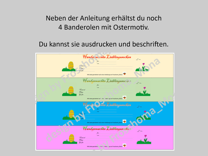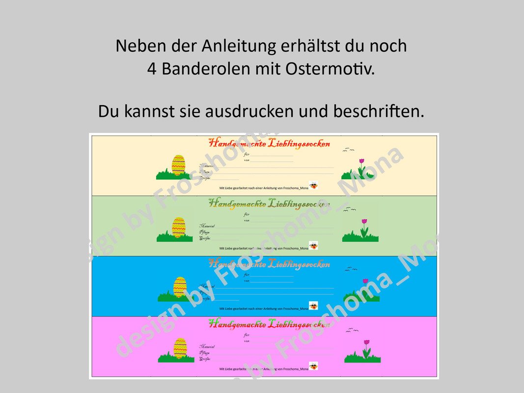Falls du die fertigen Socken verschenken möchtest, erhältst du noch Sockenbanderolen