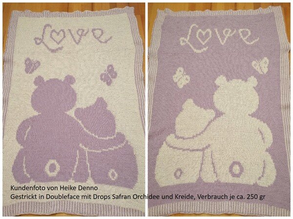 Please be so kind to respect the copyright: This pattern is for private use only. You are not allowed to sell, duplicate or trade it or parts of it. You may sell the finished product with a link to this pattern and a note «Baby Blanket Mom's Love by a-mano ».