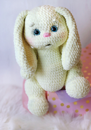 The big bunny was crocheted with a thick plush yarn, its size is 30-32 cm.
