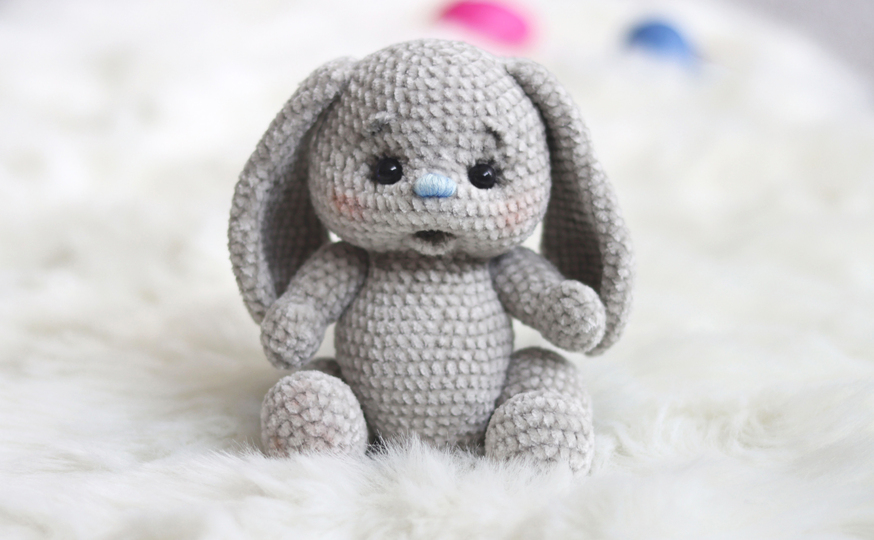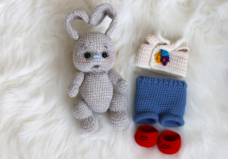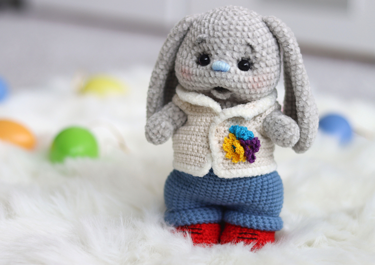 The little bunny was crocheted with a thinner yarn, resulting in a size of 17 cm.