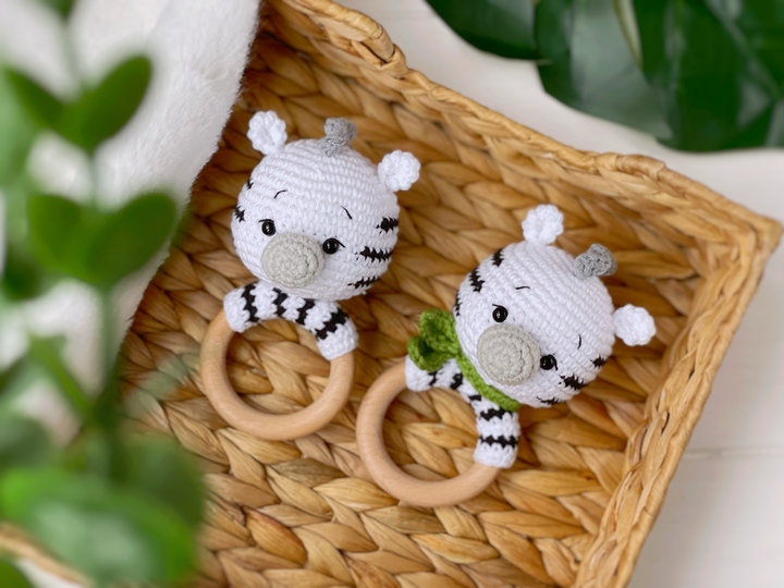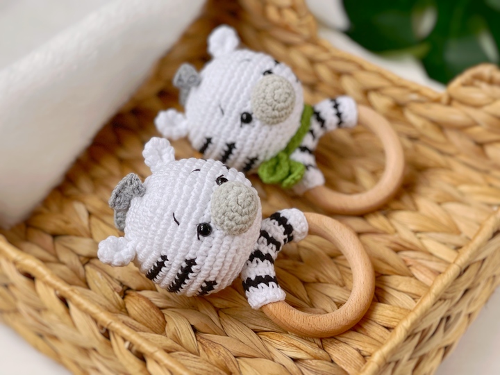 By following this easy crochet pattern, you can create a cute baby rattle zebra